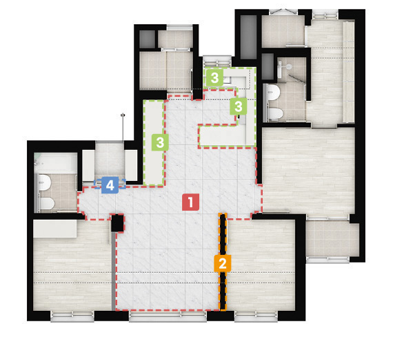 - 지하 최저 3층부터 지상 최고 18층까지이며 6개동으로 설계되어 있습니다.