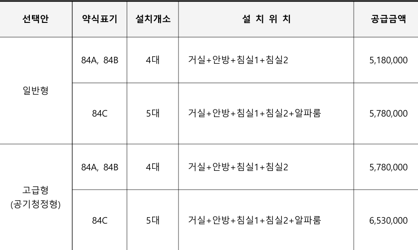 시스템 에어컨 가격 표입니다.